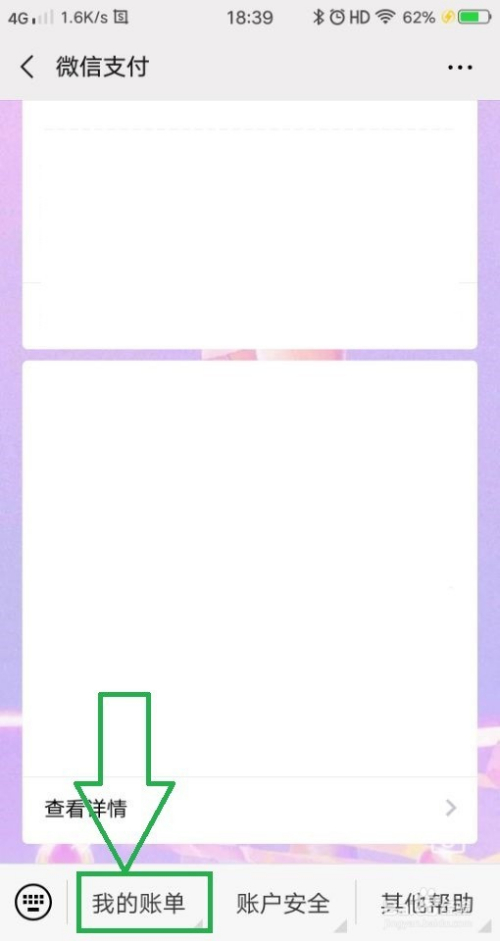 点击“进入公家号”,进入到微信付出的公家号页面,在公家号下方的菜单栏中可以看到“我的账单”。