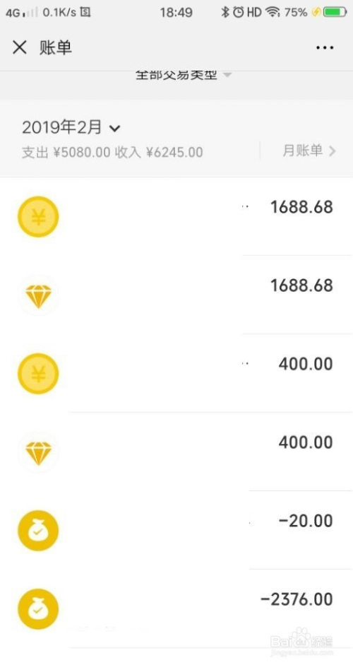 点击“买卖账单”,进入到账单页面,在页面上可以找到我们的买卖记实,在买卖记实中有的是小我收条目,有的是商户收条目。