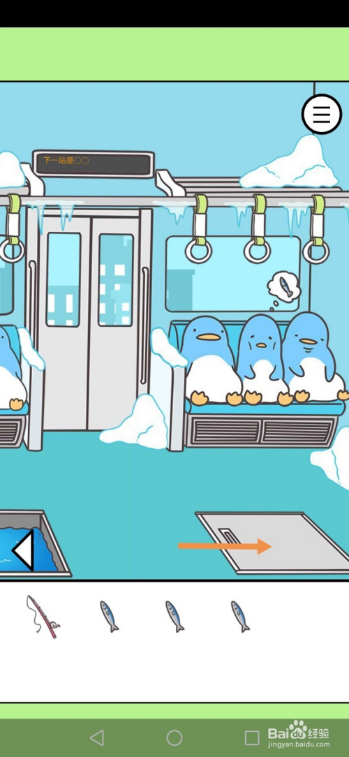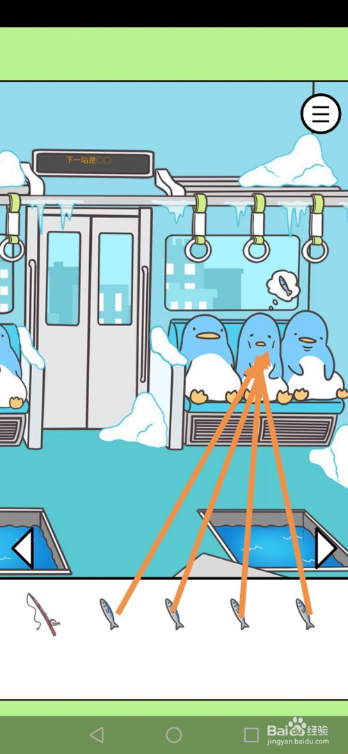 获得鱼后,将4条鱼拖动到瘦企鹅身上,然后点击空位就过关了。
