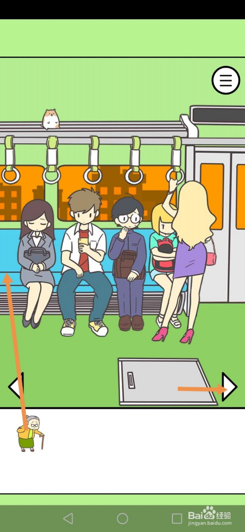 获得老奶奶后,将老奶奶拖动到空位上,然后点击标的目的右箭头到最右边去。