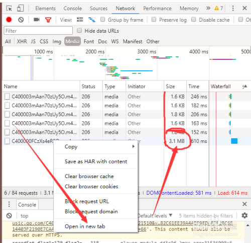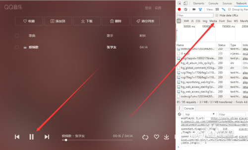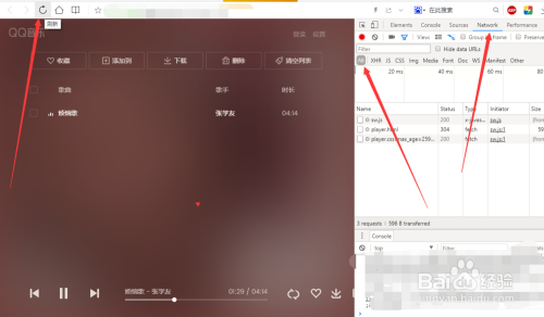 刷新之后大师点击播放那首歌,点击代码页面上的【media】