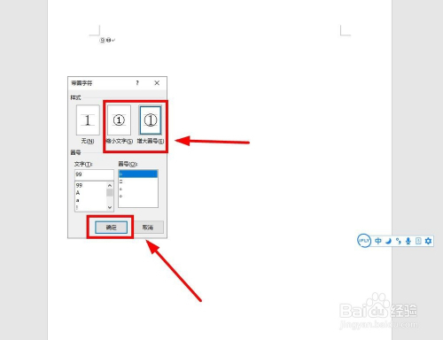 在“带圈字符”对话框中的“文字”输入框中输入要求的文字,好比“99”,在“样式”中选中第二(缩小文字)或者第三选项(增大圈号),完当作后单击“确定”