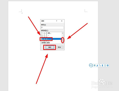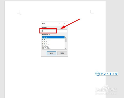 在弹出的“编号”对话框中,数字输入栏中输入要求的数字,好比“9”