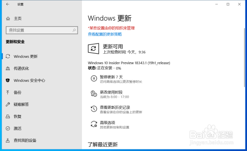 下面介绍Windows 10系统从18334.1更新进级到18343.1版的过程。