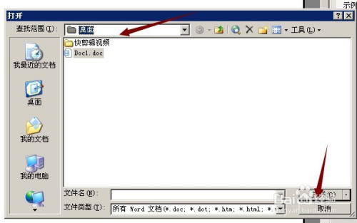 在‘打开’的窗口中,选择查找,找到本身需要的文档,在点击“打开”按钮,如下图