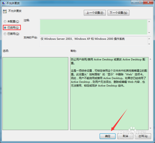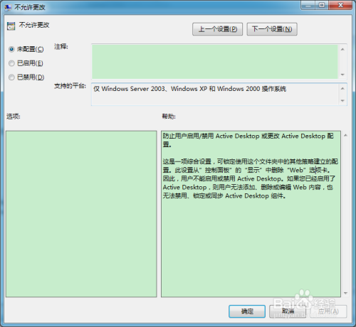 - 启用该组策略,可以放置用户更改Active Desktop设置;