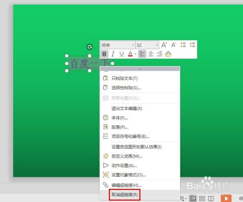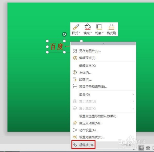 第四步:单击文字外面的文本框,单击鼠标右键选择“超链接”。