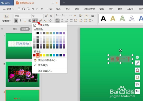 第三步:选中要设置超链接的文字,单击选择文字颜色。