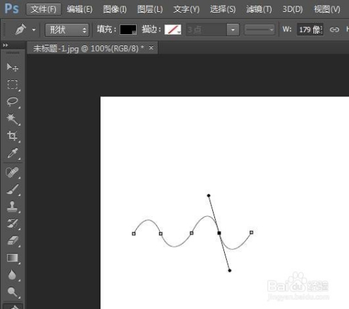 第四步:鼠标左键单击线段的中点拖动当作海浪线。