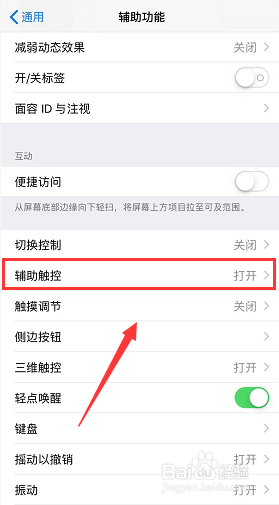 进入辅助功能界面后,选中“辅助触控”。
