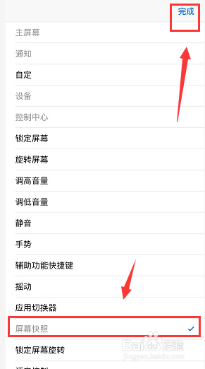 进入菜单功能列表,选择“屏幕快照”再选中“完当作”。