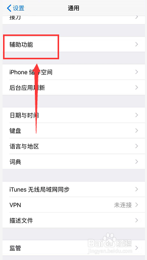 进入通用界面后,再选中“辅助功能”。