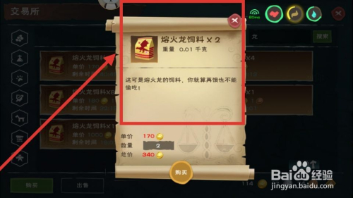 第四步,制造熔火龙饲料需要筹办材料三【罕有饲喂肉】,如下图