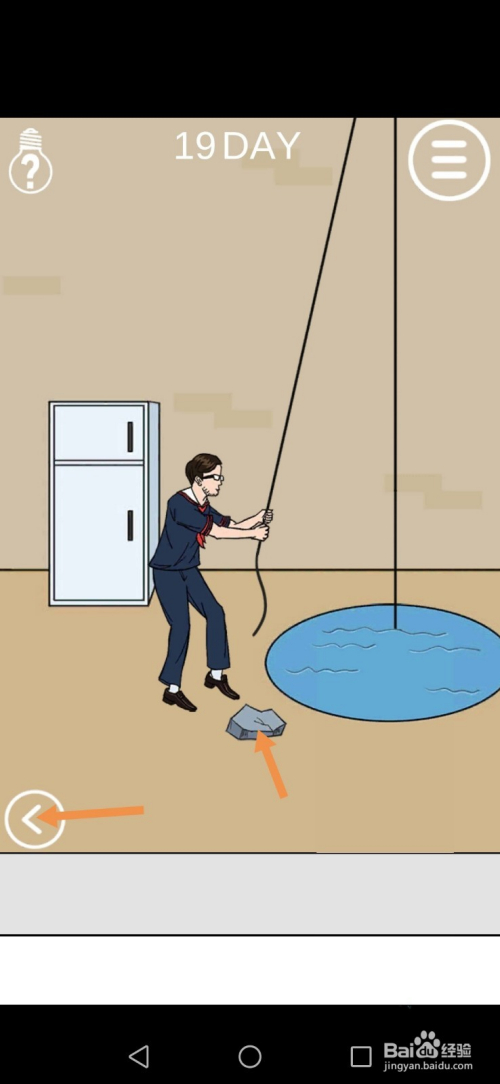 在右边房间里,点击地上的石头,然后点击标的目的左箭头进入左边的房间。