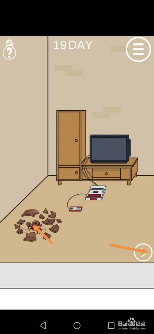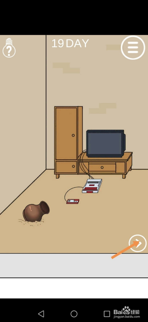 第19关先点击标的目的右箭头进入右边的房间。