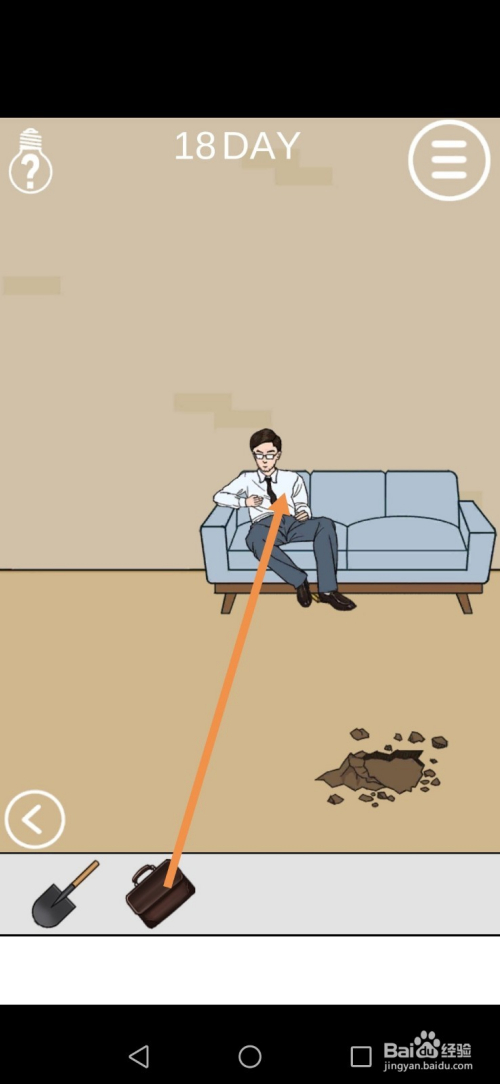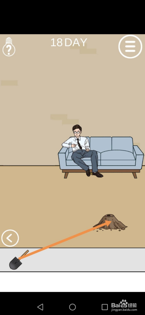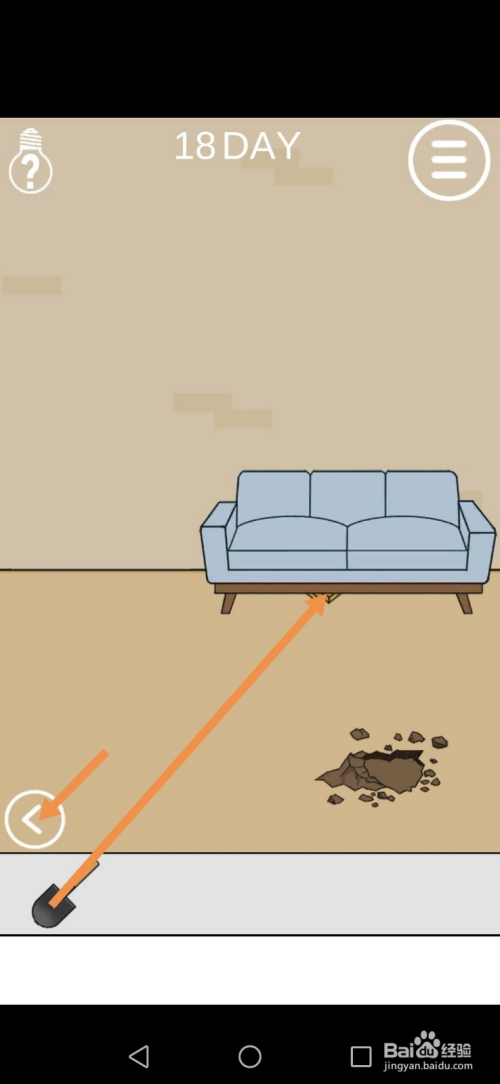 爸爸走后,将铲子拖动到沙发底下,然后点击标的目的左箭头进入左边的房间。