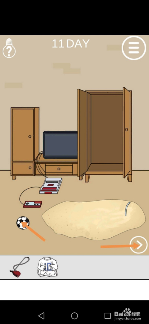 获得衣服后,点击足球,然后点击标的目的右箭头进入右边的房间。