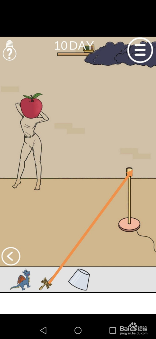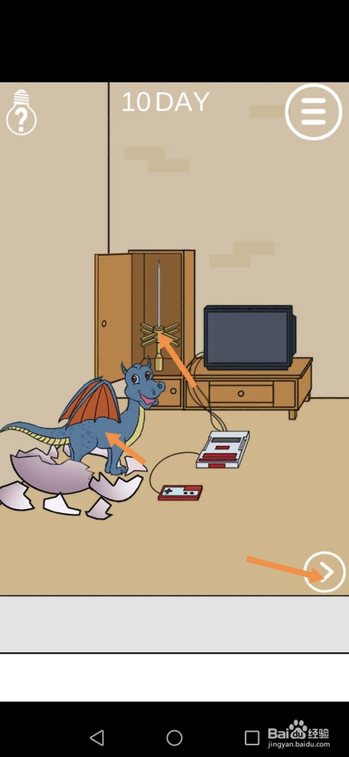 第10关先点击柜子和蛋,接着点击龙和柜子里的避雷针,然后点击标的目的右箭头进入右边的房间。