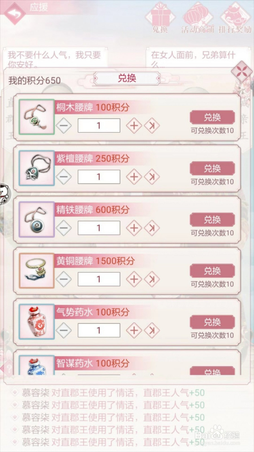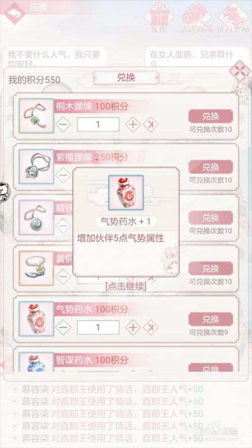 第四步:在兑换界面,点击气焰药水下方的“兑换”按钮,可以获得气焰药水。