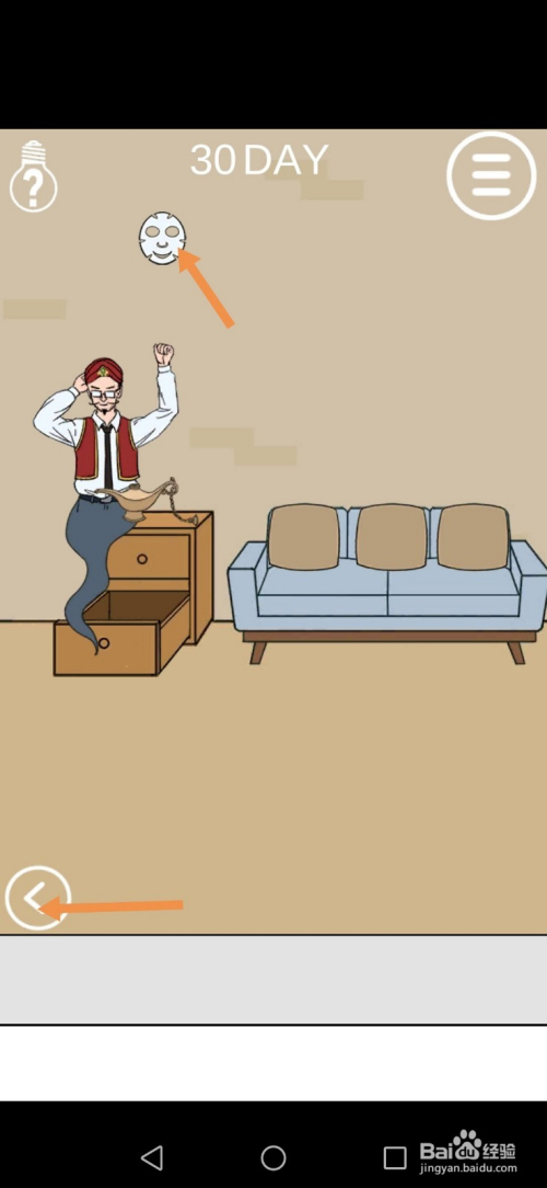 点击墙上的面膜,然后点击标的目的左箭头进入左边的房间。