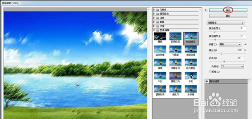 第四步:在滤镜结果中选择“粗拙蜡笔”,可以在右侧设置参数,设置完当作后单击“确定”按钮。