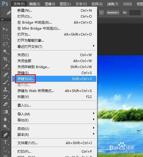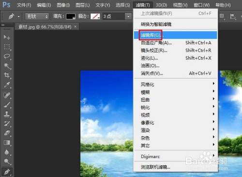 第二步:在菜单栏“滤镜”中选择“滤镜库”。