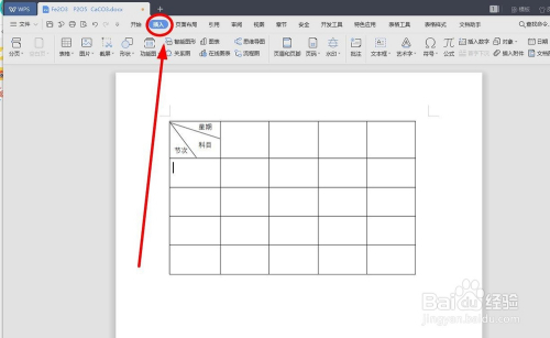 选中方针单位格,找到“插入”选项卡单击