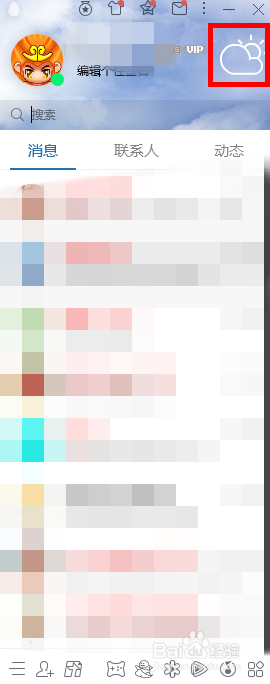 当我们在电脑上打开并登录QQ客户端,可看到本家儿板面的右上角会呈现气候的图标。
