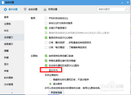 在默认状况下,QQ电脑客户端的本家儿板面右上角会显示气候预告。那么,如何设置才能使气候预告环境不显示呢?