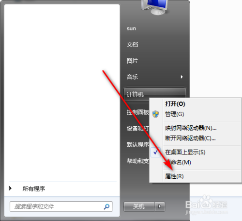 开始菜单入彀算机右击,右击菜单主动弹出;