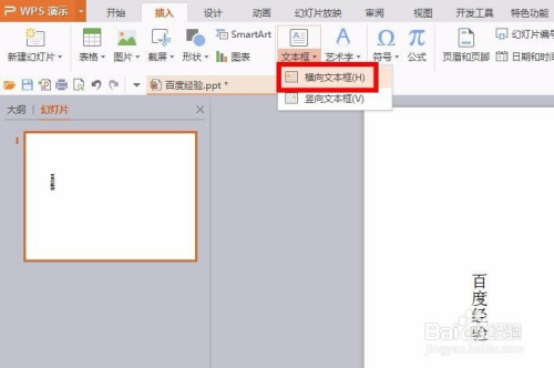 第二步:在菜单栏“插入”中选择“竖排文本框”。