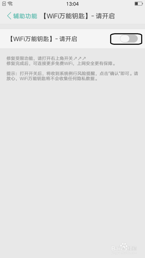 打开wifi全能钥匙-请开启界面中看到已经封闭了。