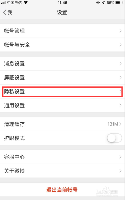 在设置本家儿页下,细心寻找找到【隐私设置】一栏,如图所示,点击进入隐私设置!