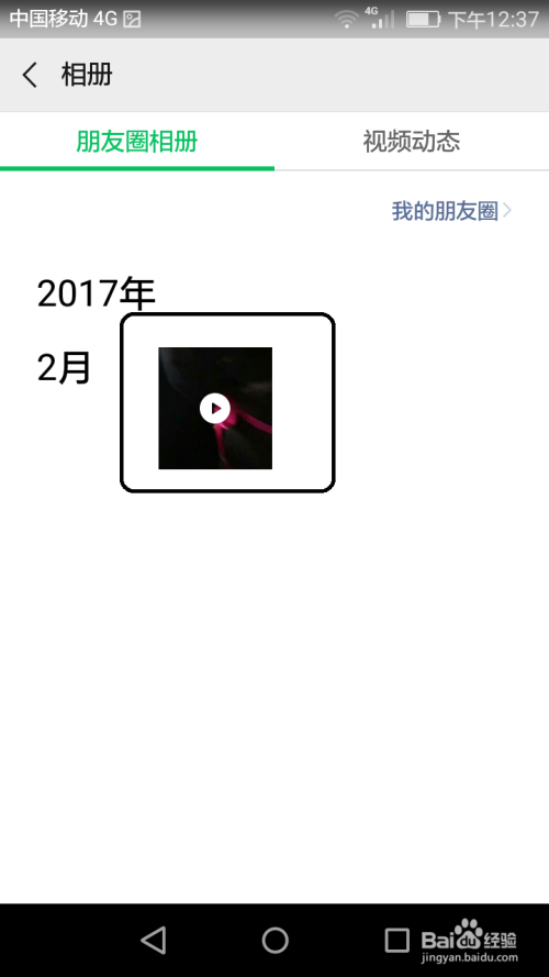 然后打开相册界面选择“朋友圈相册”选项,此时界面列表已发的视频或相片,这里只有发视频,点击该视频。