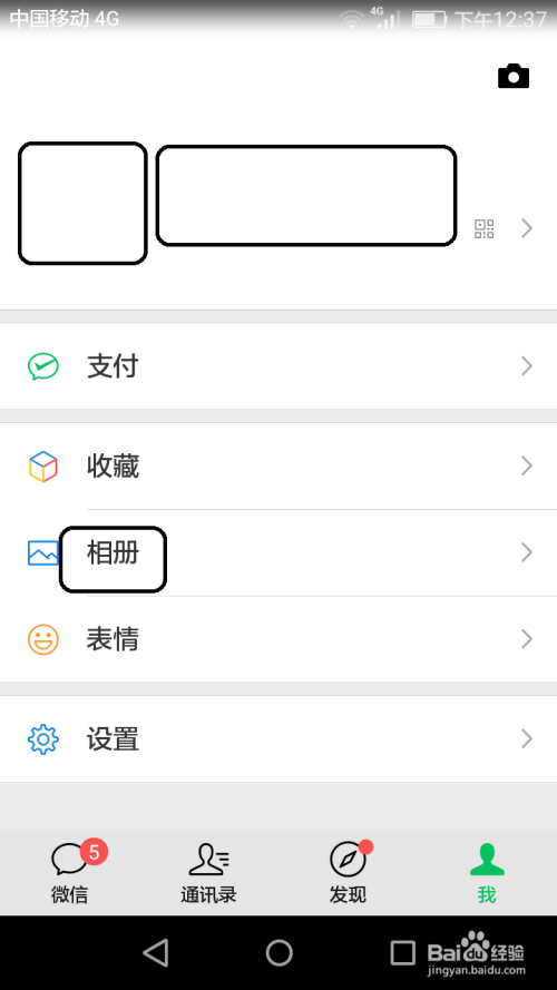 打开微信点击我的栏选项界面中单击“相册”选项。