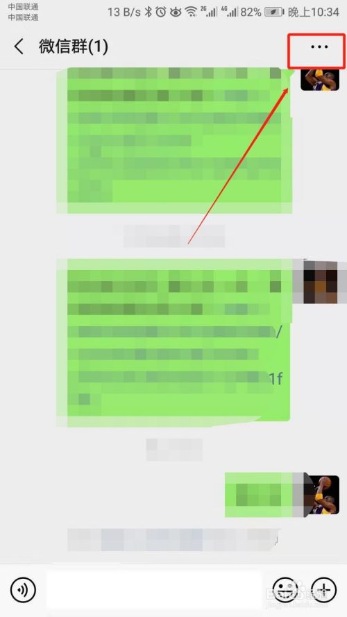 第二步,进入微信群之后,点击右上角的三个点,如图所示。