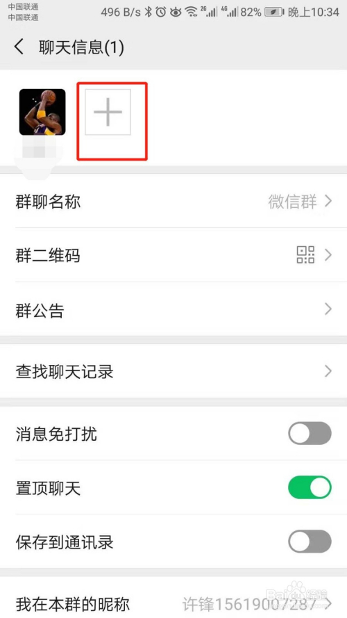 第四步,点击三个点之后进入到连天信息页面,再点击加号,如图所示。