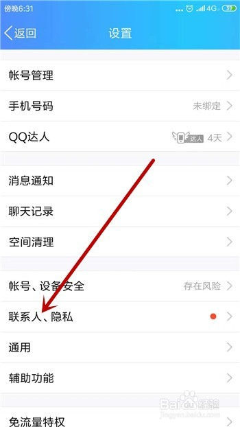设置里面点击【联系人、隐私】选项。