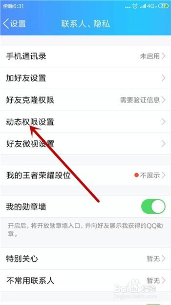打开联系人、隐私设置后点击【动态权限设置】。