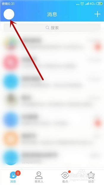 在手机QQ里点击左上角的账号头像,如图所示。