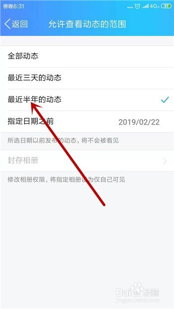 许可查看动态的规模有三个选择,这里选择【比来半年的动态】,这样别人查看空间动态则只能看到比来半年的。