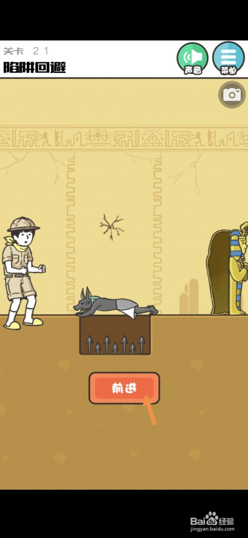 第21关先点击木乃伊棺,木乃伊棺里的怪物炮过来后,点击进步。
