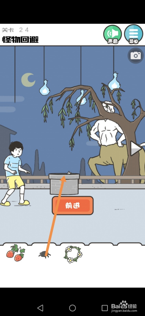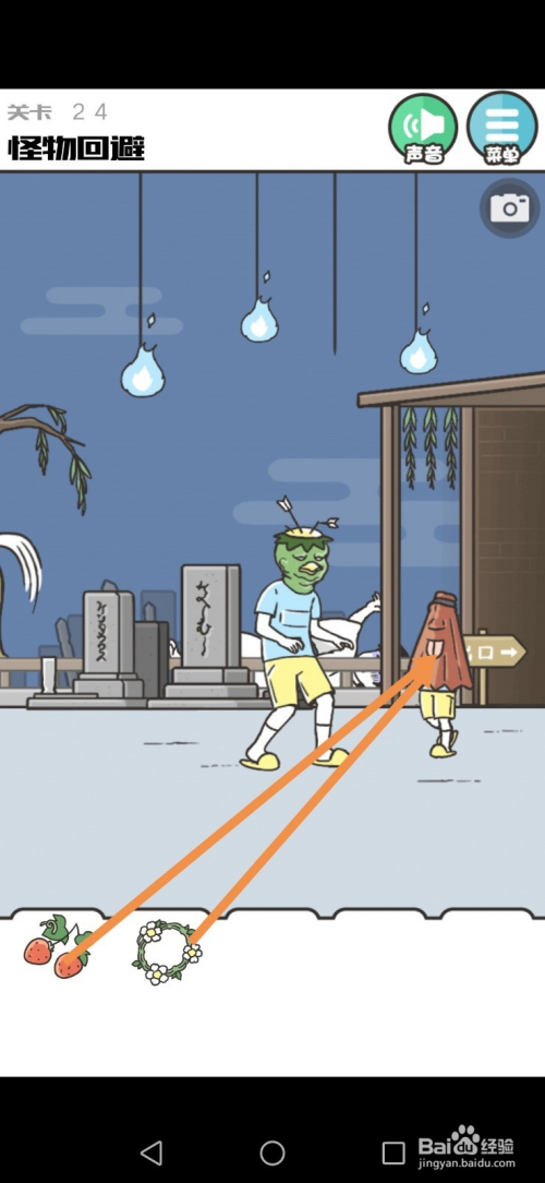 碰着怪物的时辰,将草莓和花环拖动到怪物身上就过关了。