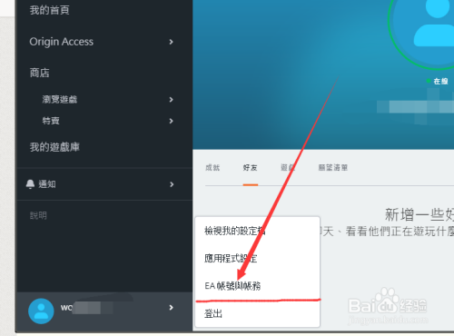 然后我们在弹出的那几个选项中点击【EA账号与账务(E)】