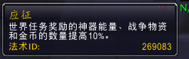 开启战争模式,玩家多了一个叫“应征”的buff,不满级的时辰做使命或者击杀怪物能增添10%的经验,满级之后宿世界使命奖励的神器能量、战争物资和金币数目增添10%。