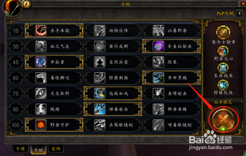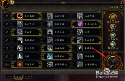 进入魔兽世界今后,在游戏界面,点击右下角的“专精和先天”;