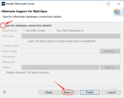 设置装备摆设与数据库的毗连,这里临时反勾选不进行设置装备摆设,然后点击“Next”,如下图所示: