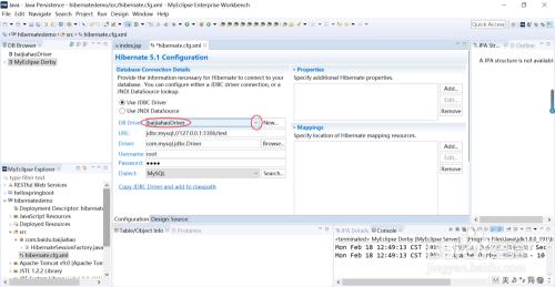 打开hibernate.cfg.xml设置装备摆设文件,DB Driver下拉选择先前设置装备摆设的驱动名称,然后保留,如下图所示: