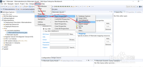 依次选择“Window”->“Perspective”->“Open Perspective”->“Java Persistence”,如下图所示: