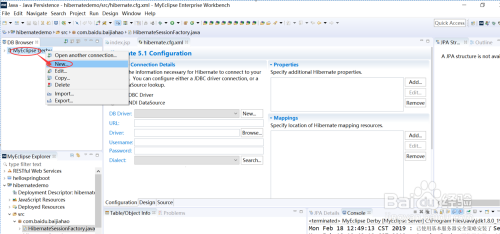此时会打开DB Browser,右键选择“New”来新建一个数据库毗连,如下图所示:
